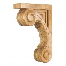 The corbels are raw (unfinished; no varnish or stain) and are available in multiple sizes and in various species of wood.