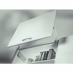 FGV's Aeroloft lift-up system imparts a high-tech, modern feel when installed. The mechanism works by lifting the cabinet door up vertically (in a sliding motion, straight up), without compromising internal access or visibility into the cabinet. The technology is designed to sustain the door open in various positions, and the damping technology is silent and controlled for a nice quiet smooth close action.