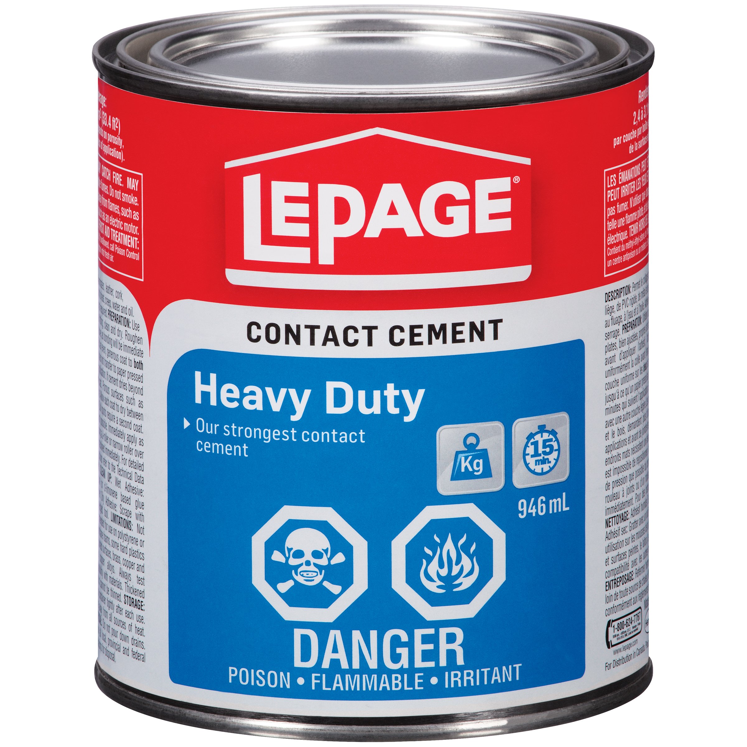 LePage's heavy duty contact cement is a premium, high strength bond adhesive. It dries very quickly and bonds immediately - no clamping required! This product is heat, creep, water and oil resistant.
