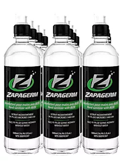 Zapagerm Hand Sanitizer is made from 75%-80% ethyl alcohol. This health protection product certified by Health Canada is effective in eradicating any type of virus or bacteria that may be present on the skin. Its formula enriched with aloe helps prevent drying of the hands.